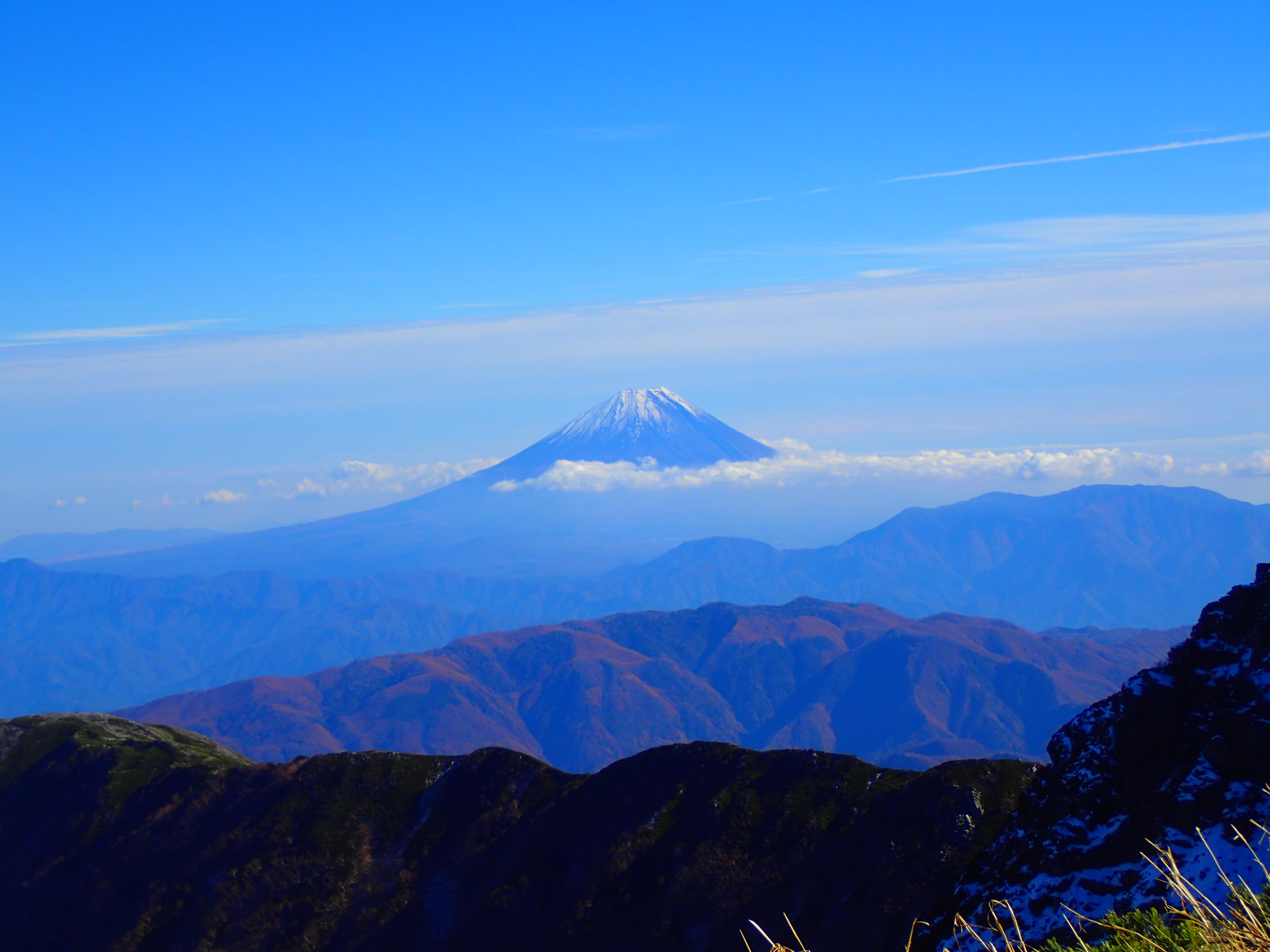 稜線からは仙丈ヶ岳や甲斐駒ヶ岳、鳳凰三山の南アルプス主峰はもちろんのこと、富士山も見ることができました!夏の真っ青な富士山もいいですが、雪化粧した富士山もきれいですね。