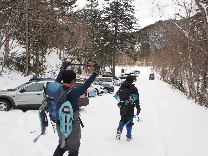 車の温度計ではマイナス15℃、寒いです!それでも駐車場には10台以上の車がありました。