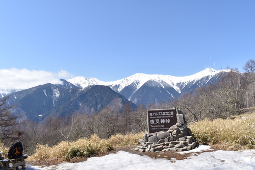車道や登山口には雪はありませんが、白峰三山にはたくさんの雪が残っています。場合によっては、3月あたりでも夜叉神峠に雪が残っているときがあります。標高が低いところでは春が訪れている場所もある時期ですが、標高が高い山ではまだまだ冬山のように感じられます。雪で白くなった白峰三山はとても雄大でいつ見ても圧倒されます。この時期は登山道が凍っていることもありますので、雪道歩きが不慣れな方はアイゼンなどを携帯してくださいね。