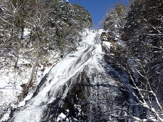 冬の湯滝は周囲の樹木が落葉しているため、明るく感じられてまた素晴らしく感じます。