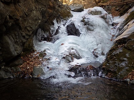 巡視当日はアトリの群れやニホンザルが見られ、三条の湯までの沢沿いの道では結氷箇所が多く見られました。