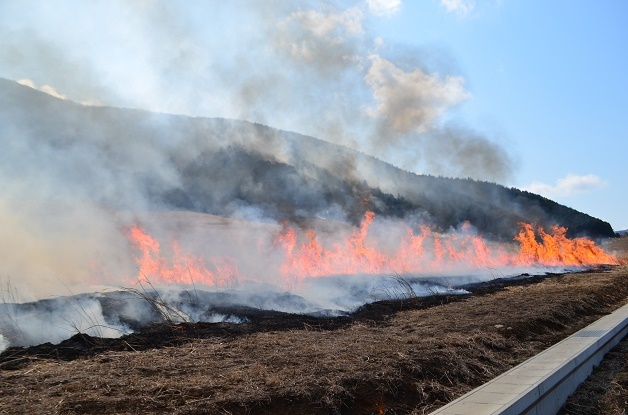 今年は山焼きが予定されていた日に、強風や草原の湿り気により2度の延期の末、3月15日に実施されました。