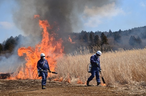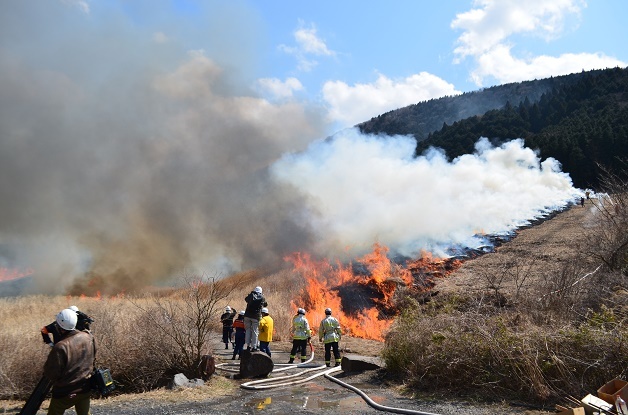 箱根の仙石原ススキ草原では、毎年3月頃にススキ草原の山焼きが行われます。