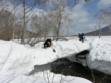 今回は環境省が管理している竜宮十字路付近の橋の除雪点検をしてきました。