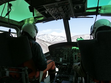 初めてヘリコプターに乗ったのですが、高いところが苦手なのでどこを飛んでいるのかさっぱり分かっていません。この日は天気が良く、風もなかったのが救いです。