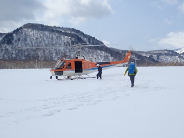 冬になると、毎年除雪隊が山小屋や橋の除雪を行うのですが、雪深い尾瀬に徒歩で入ることは難しいためヘリコプターで行きます。今回は戸倉から竜宮十字路付近まで行きました。