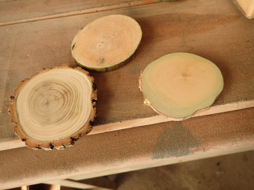 先日、コースターとして使う芦安産の木のスライスを行いました。