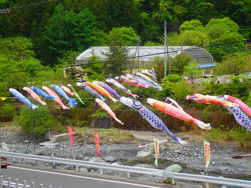 事務所がある芦安では新緑が色鮮やかになりました。事務所の前を流れる御勅使(みだい)川にはこいのぼりがかけられ、元気よく泳いでいます!