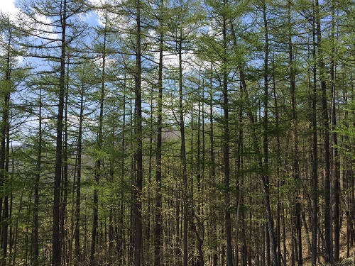 アカヤシオの花が春を告げてくれていましたが、落葉樹の樹木はまだ展葉(葉が開いて展開すること)していないものも多く、新緑の季節はまだ少し先のようです。ですが、日本の針葉樹のうち唯一の落葉樹であるカラマツは元気に芽吹きはじめていました!私はまだ日光では、落葉したカラマツしか見ていなかったので、一気に春を感じました。