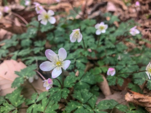 ニリンソウです。5月上旬に咲く綺麗なお花です。ミツバツツジやダンコウバイが咲いていました。夏季には御座石温泉ルートにもたくさんの花が咲きます。急登続きのルートではありますが、お花を見ながらゆっくり登るのもいいですね。