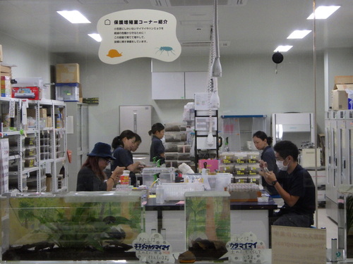 保護増殖している部屋をガラス越しに見学することができます。