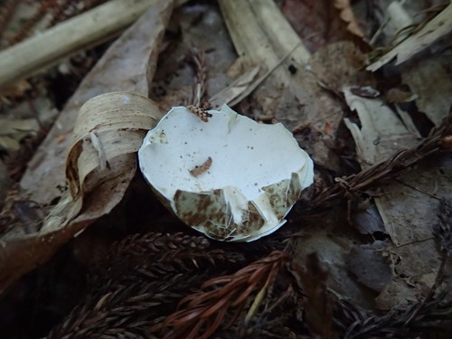 巣の下に行くと、多くの場合、卵の殻が落ちています。卵の殻を用いて、トキが何個卵を産んだのか(産卵数)、卵は有精卵だったのか(有精卵率)、などを調べます。