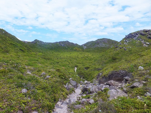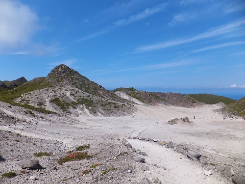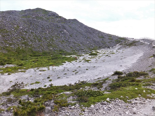 不入沢を左手にして山頂部の縁をまわり、山頂中央部へ入っていくと、なだらかな火口原が始まります。