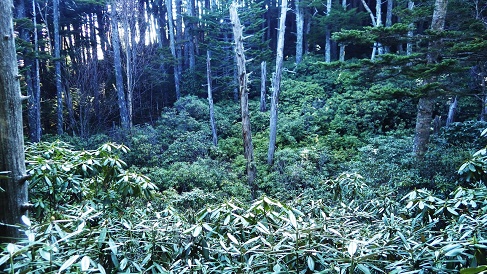 (十文字峠の長野側にある乙女の森のシャクナゲ)