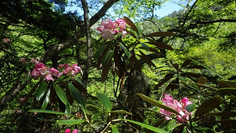 下っている途中、標高1300m辺りでアズマシャクナゲの開花に出会いました!
