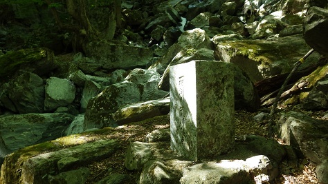 コケの絨毯に癒やされつつ踏まないよう気をつけて歩いていると、途中で栃本方面と川又方面に歩道が分かれます。