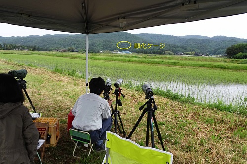 今回の放鳥はソフトリリースという方式をとり、順化ケージの扉を開けておくことで