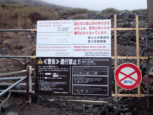 上の写真にある通り、六合目以上の登山道はまだ開通していません。
