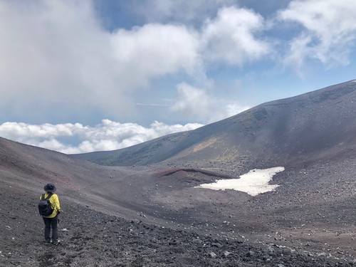 宝永山は、江戸時代中期(宝永4年)に形成されたもので、富士山においては最大で最新の側火山です。火口の大きさから噴火の規模がどれだけ大きかったかを想像させます。実際に、宝永火口が形成された噴火は「宝永大噴火」と言われており、その噴煙は東京まで達したそうです。