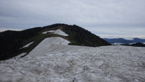 山頂付近はまだ残雪しており、滑りやすい箇所があります。