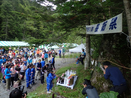 「死んだら仙丈の方へ向けて埋めてほしい」と遺言を残したそうですが、この日は仙丈ヶ岳の山頂は見えず。竹澤長衛翁が天国で悲しい思いをしていたのでしょうか。お祭りでは、芦安小学校児童と長谷小学校児童による「ふるさと」の合唱や南アルプスカルテットによる演奏の中、竹澤長衛翁レリーフへ献花をしました。中盤から雨が降り、時折寒さを感じるほどでしたが、多くの方が参加されていました。