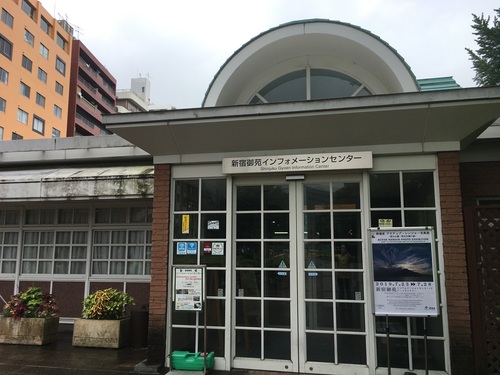 新宿御苑には千駄ヶ谷門、大木戸門、新宿門の3つがあります。インフォメーションセンターは新宿門の入場ゲートの横にあります。