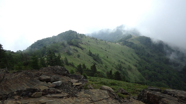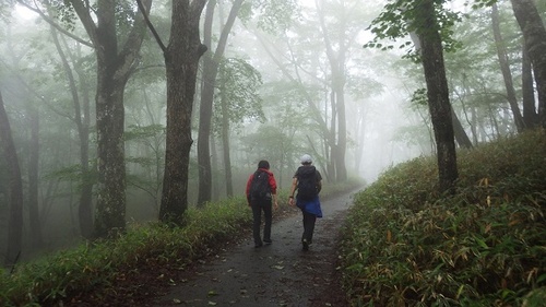 下山時は雨に降られてしまいましたが、霧に包まれた森が幻想的でした。