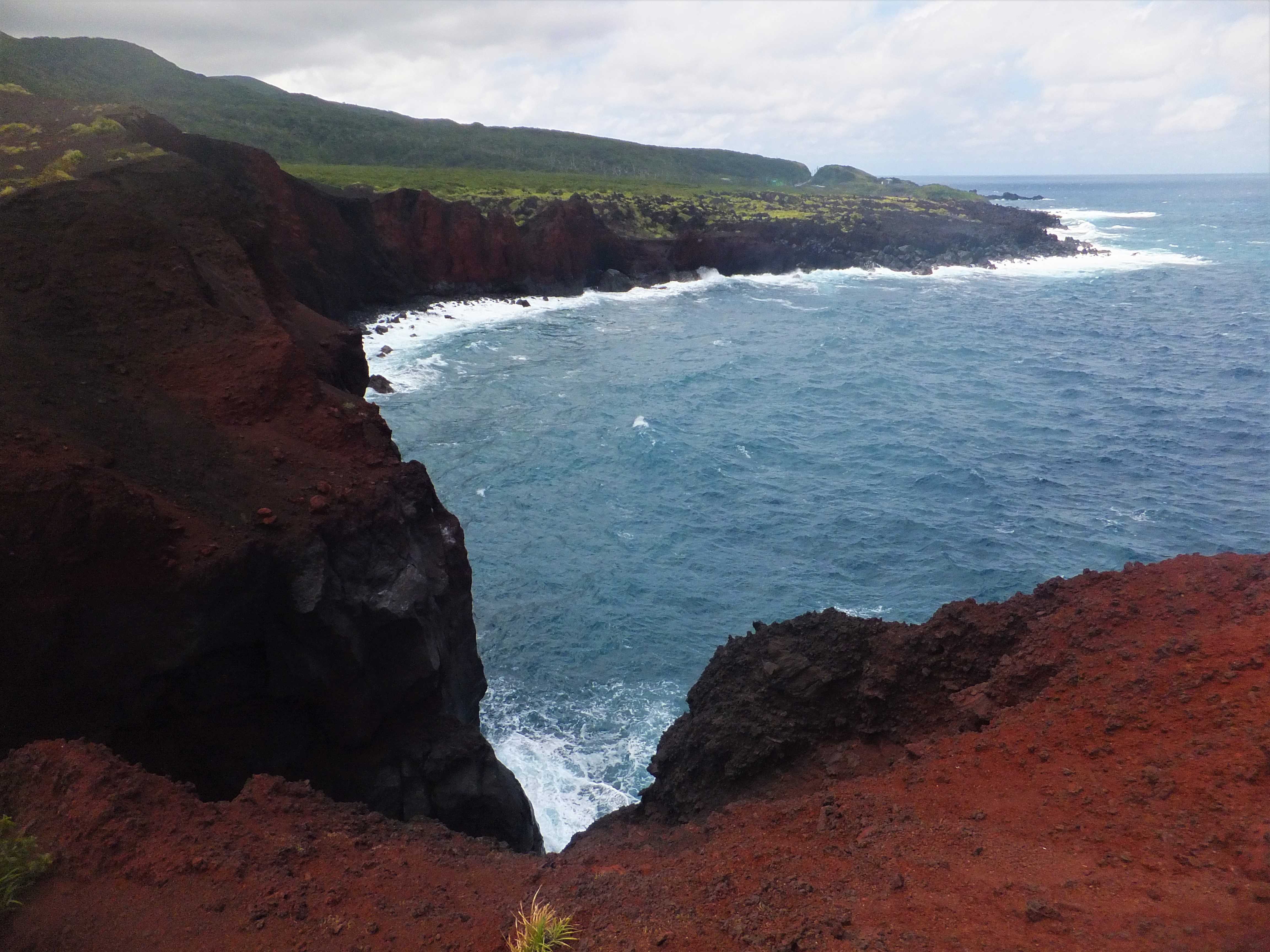 1940年、1962年と続いた噴火の溶岩流と噴出物は、海を埋め尽くし、左手の崖と「ひょうたん山」の間には、平らな溶岩台地、「赤場暁(あかばっきょう)」ができました。
