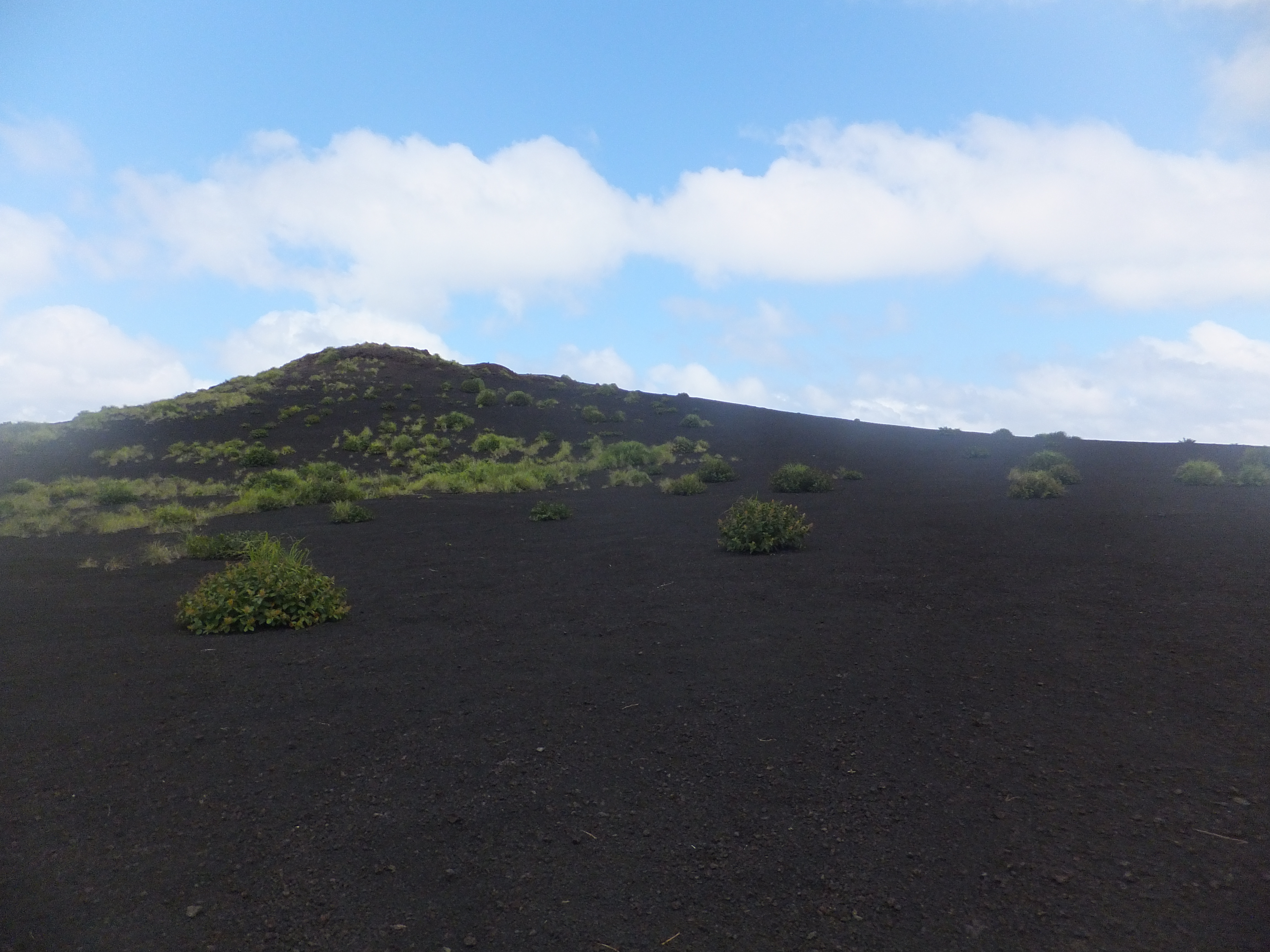 遠くから見ると大きな火口に見えますが、近づいてみると、意外と高低差が小さいので、すぐに火口の縁まで登っていけます。