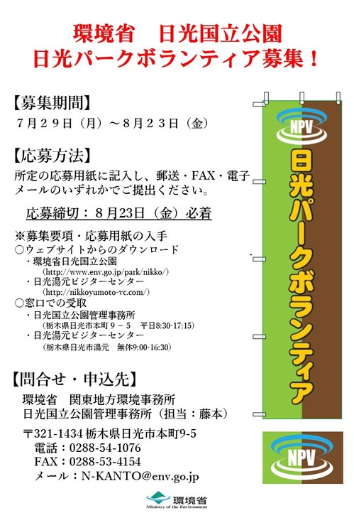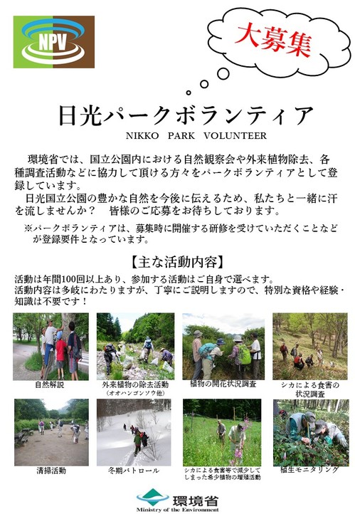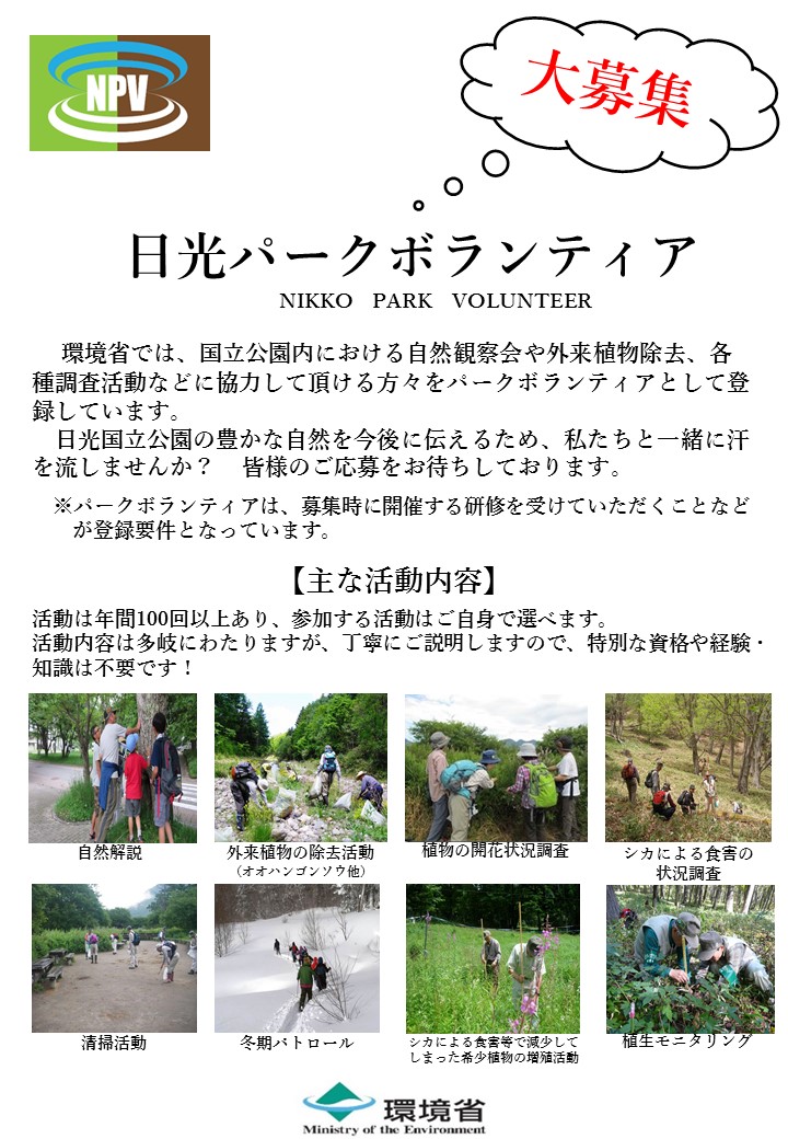 日光国立公園日光地区では、現在パークボランティアを募集しております!