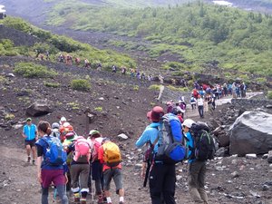 山頂での御来光を目指して、真っ暗で混雑する中登山をすることは、落石、転倒などそれなりのリスクがあります。特にお子様連れの方は無理をしないで安全に楽しく登山をして欲しいです。