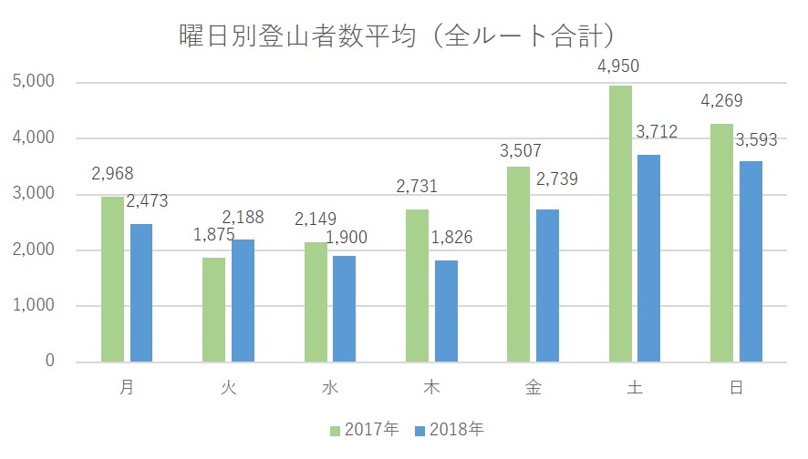 下記グラフを見ると曜日によっては、週末の半分くらいとかなり違います。