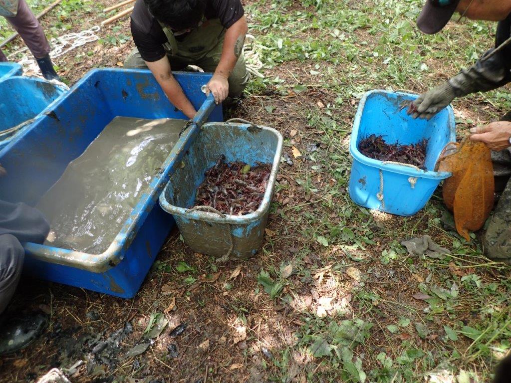 <小学生への普及啓発活動> <地域イベントへの参加(写真は外来魚駆除の様子)>