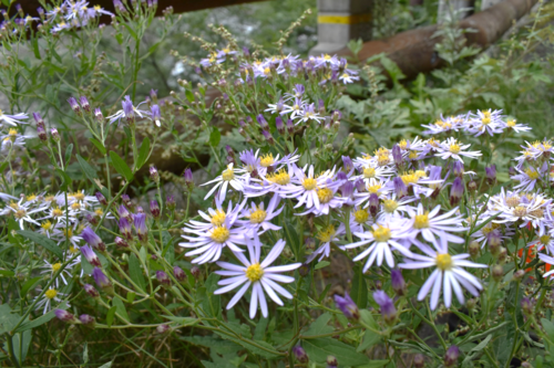 秋の低山を代表する植物の1つです。咲いているところによって濃い紫色や少し白っぽい色などさまざまです。群落で咲いていることが多く、鮮やかな紫色がとても綺麗です。広河原で多く見られます。ヨメナという花に似ていますが、ノコンギクには葉や茎に毛が生えていることが特徴です。