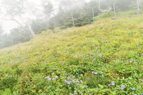 柵の中には少し枯れ始めてしまってはいますが、タカネマツムシソウがたくさん咲いていました。