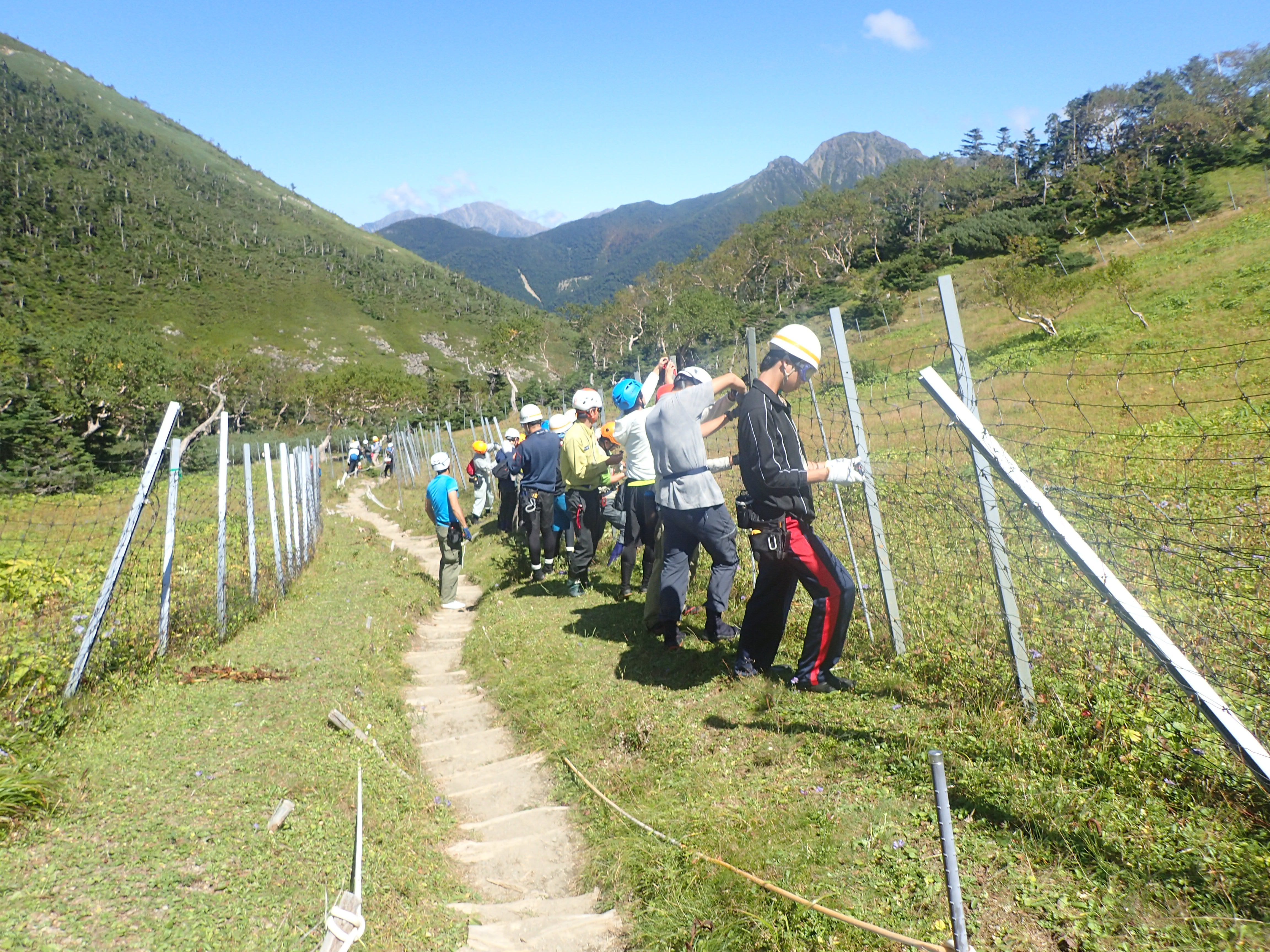 9月14日から16日の3連休で静岡県事業として三伏峠の防鹿柵修繕作業を、環境省事業として塩見岳の伏工作業を静岡県ボランティアネットワークのみなさんと行ってきました。