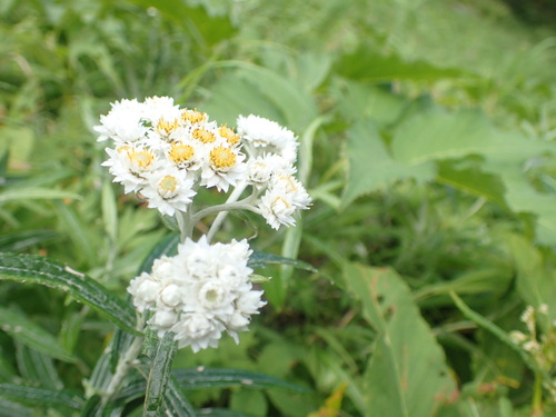 先端に白と黄色のドライフラワーのような花を付けます。二俣周辺にたくさん見かけます。漢字では「山母子」と表します。ミネウスユキソウに似ていますが、咲いている標高や花弁に大きな違いがあるので、区別は付くかと思います。