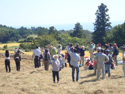 2019年9月27日、佐渡市片野尾(かたのお)の棚田でトキの放鳥を行いました。地域の方々が放鳥箱を開けてトキを放す、初めての試みです。