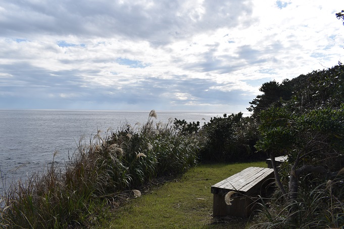 林を抜けると、急に波の音が近くに聞こえ、歩道が海に近づきます。海沿いの歩道からは、透き通る海、水平線、遠くに見える房総半島など、すばらしい眺望を楽しむことができます。