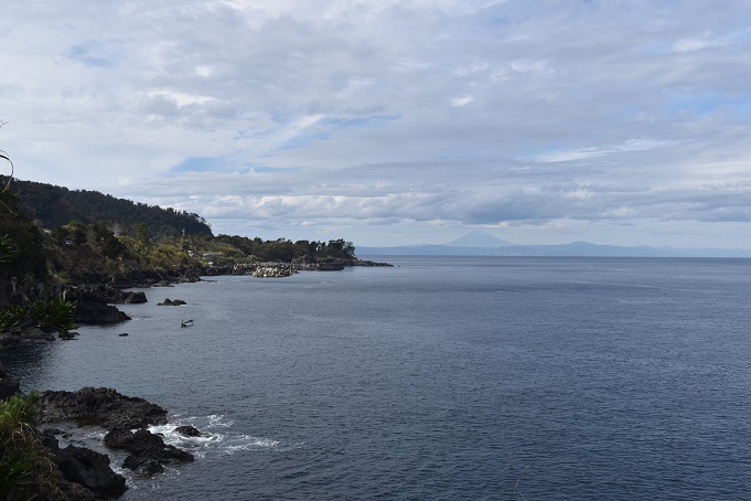 終点付近の潮吹き崎では、泉津漁港の長閑な景色と富士山の姿を眺めることができます。