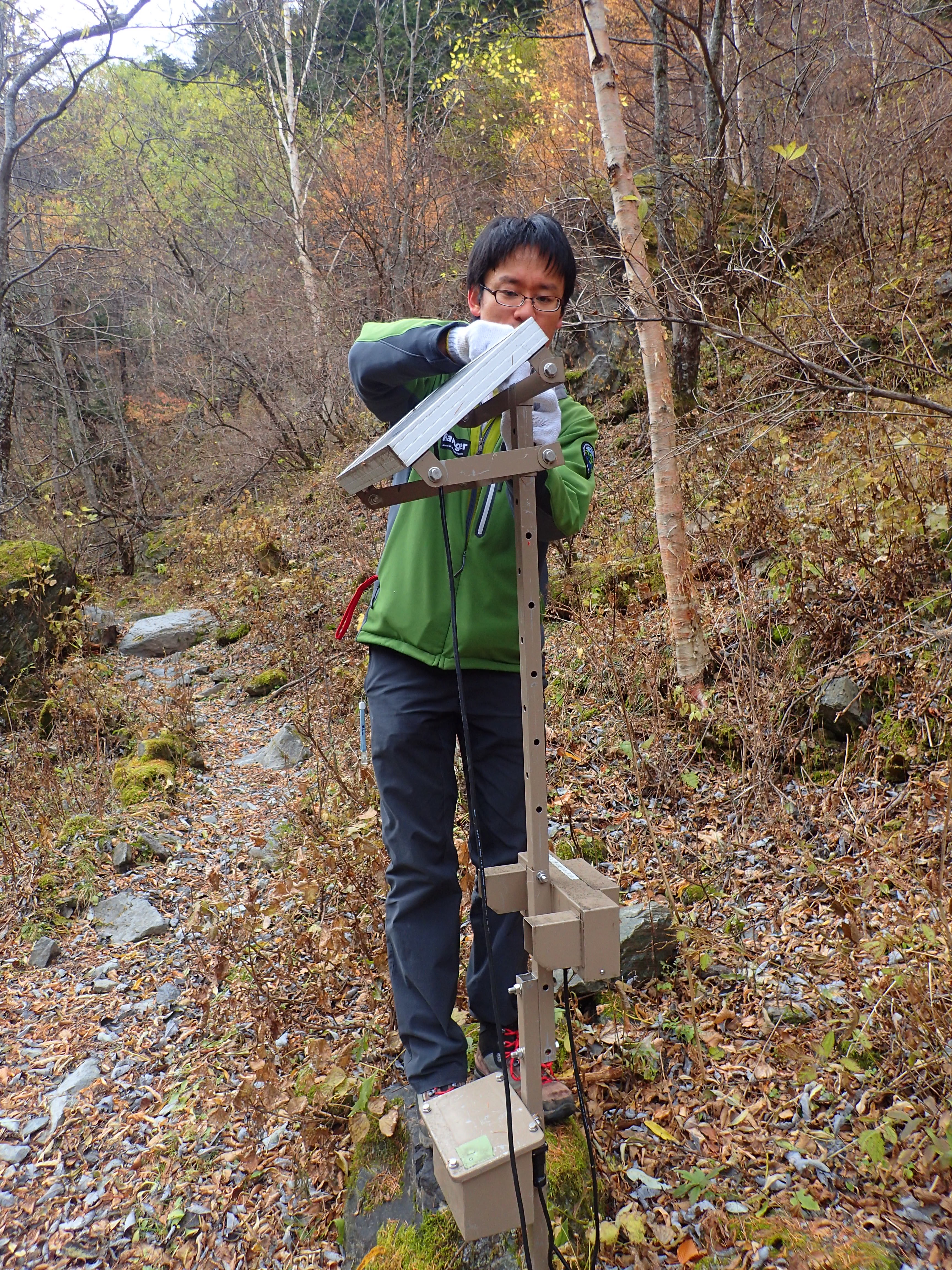 11月中旬に登山者カウンターの撤去作業を行いました。登山者カウンターの設置は平成22年から毎年設置しており、広河原から北岳山頂に続く、大樺沢ルート、白根御池小屋ルートにどれくらいの人が利用しているのかを調べています。