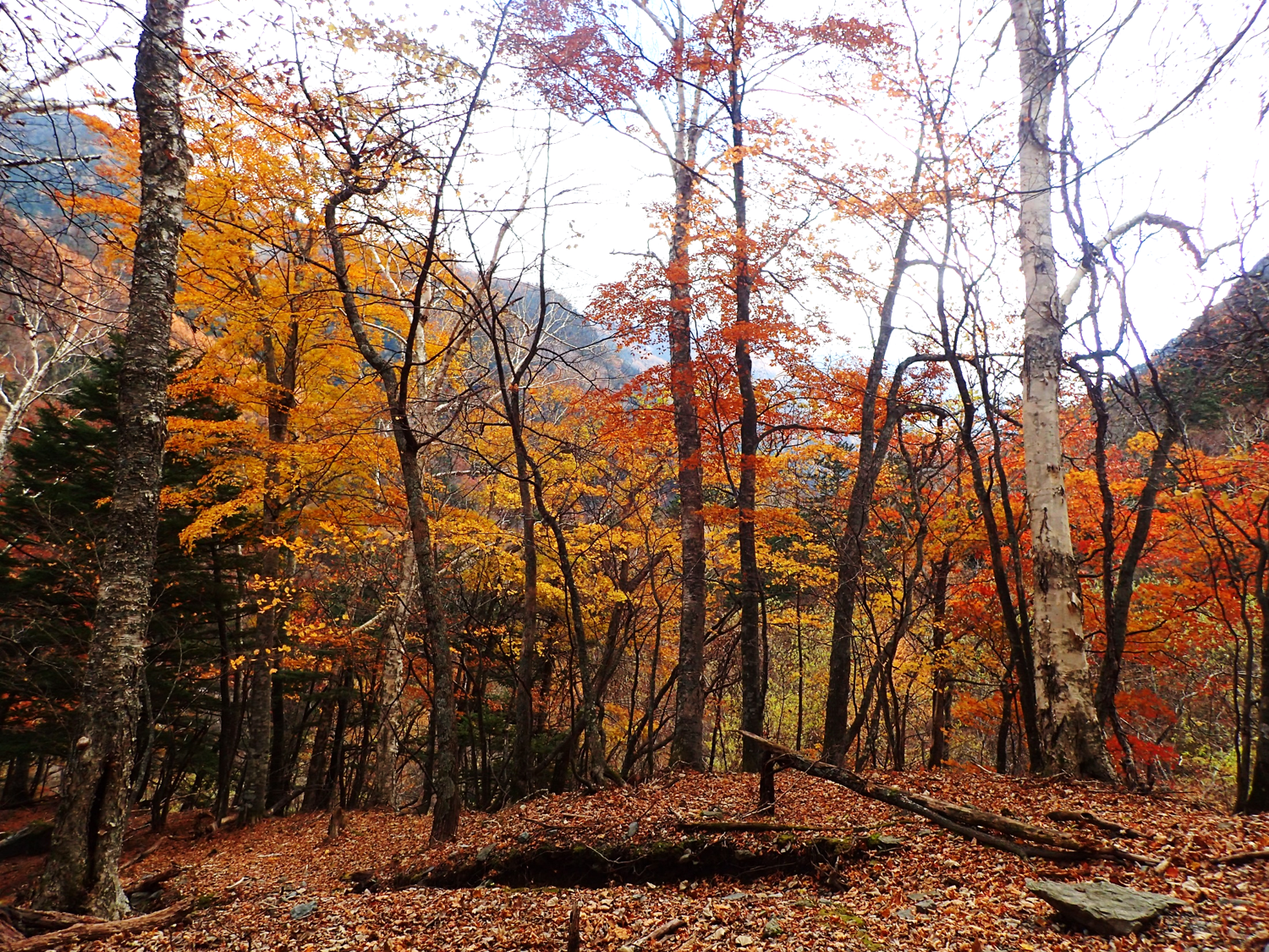 北岳山頂付近は冬らしさが感じられましたが、広河原山荘から少し歩いたところではまだ綺麗に紅葉していました。