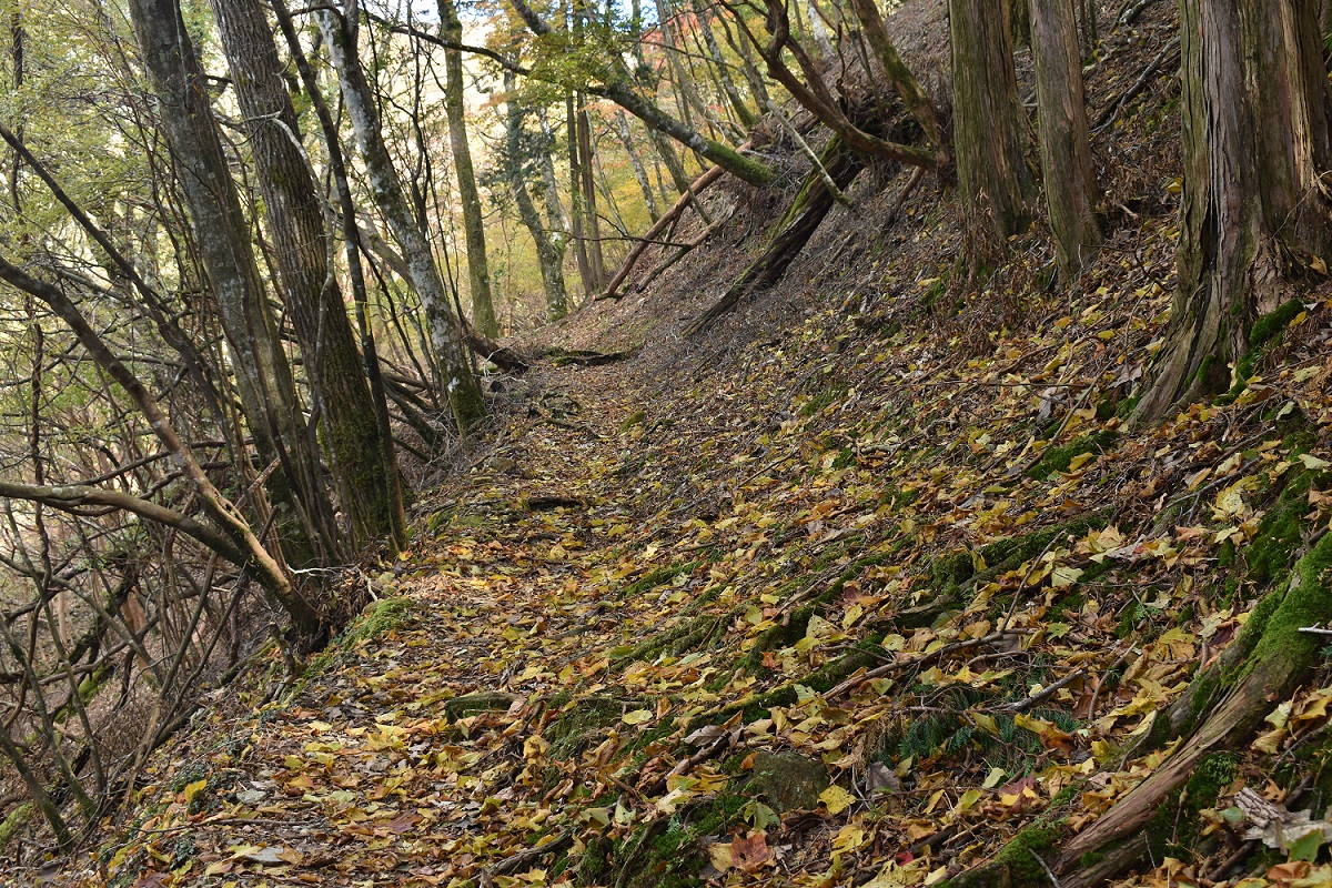 登山道は、所々色とりどりの落ち葉の絨毯で彩られています。歩いているとフカフカして気持ちいいですが、湿っていたり落ち葉が積もりすぎていると滑りやすく、歩道が狭い場所もありますので景色を楽しみながらも足下の確認はお忘れなく!!