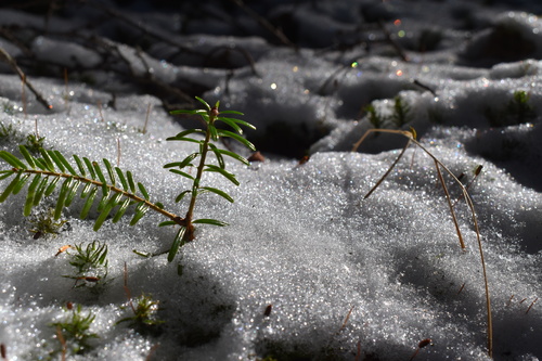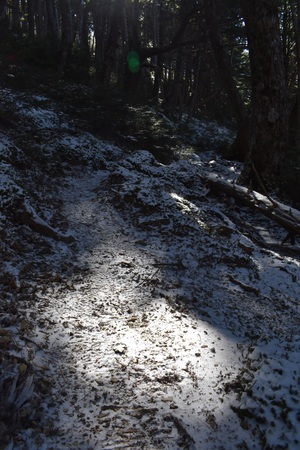 登山道を歩いていると、雪がキラキラ綺麗!!思わず写真を撮っちゃいました。