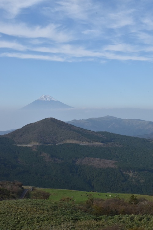 展望台から富士山の方に目を向けると、眼下に牧場があり、天気のいい日は放牧された牛が草をはむ姿や鳴き声を聞くことができます。力が抜けてゆったりとした気持ちになると思います。カメラの望遠や双眼鏡を使って見るのもオススメです。