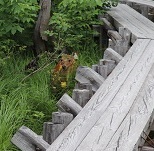 ・シカが土壌を掘り返して泥浴びをしたり、踏み荒らしたりしてしまうことで湿原が露出してしまいます。