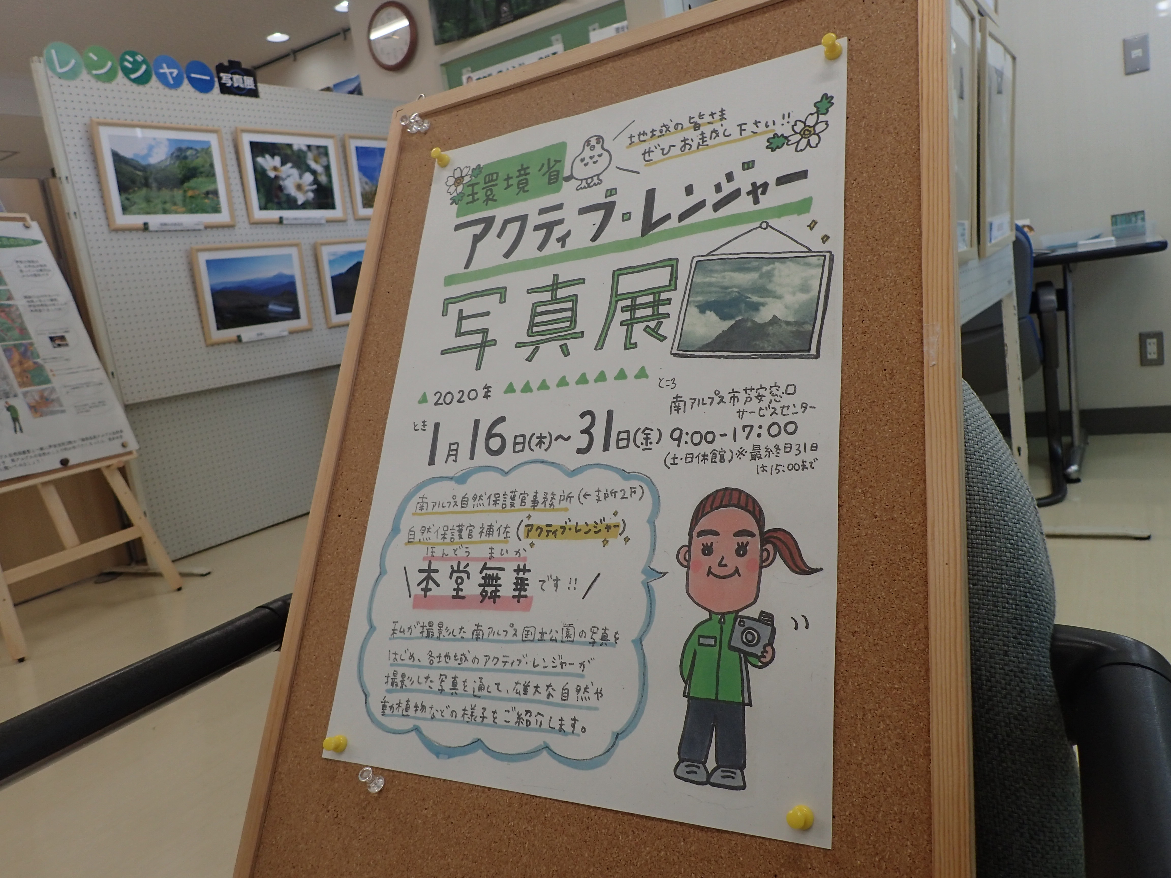 夏に野呂川広河原インフォメーションセンターでアクティブ・レンジャー写真展を開催したところ、おとなりさんの芦安地域おこし協力隊の方と集落支援員の方が「ぜひ、芦安地域でも開催してほしい!」とお声をいただき、今回、芦安地域で開催させていただけることになりました。芦安地域での開催は今回が初めてです!!!
