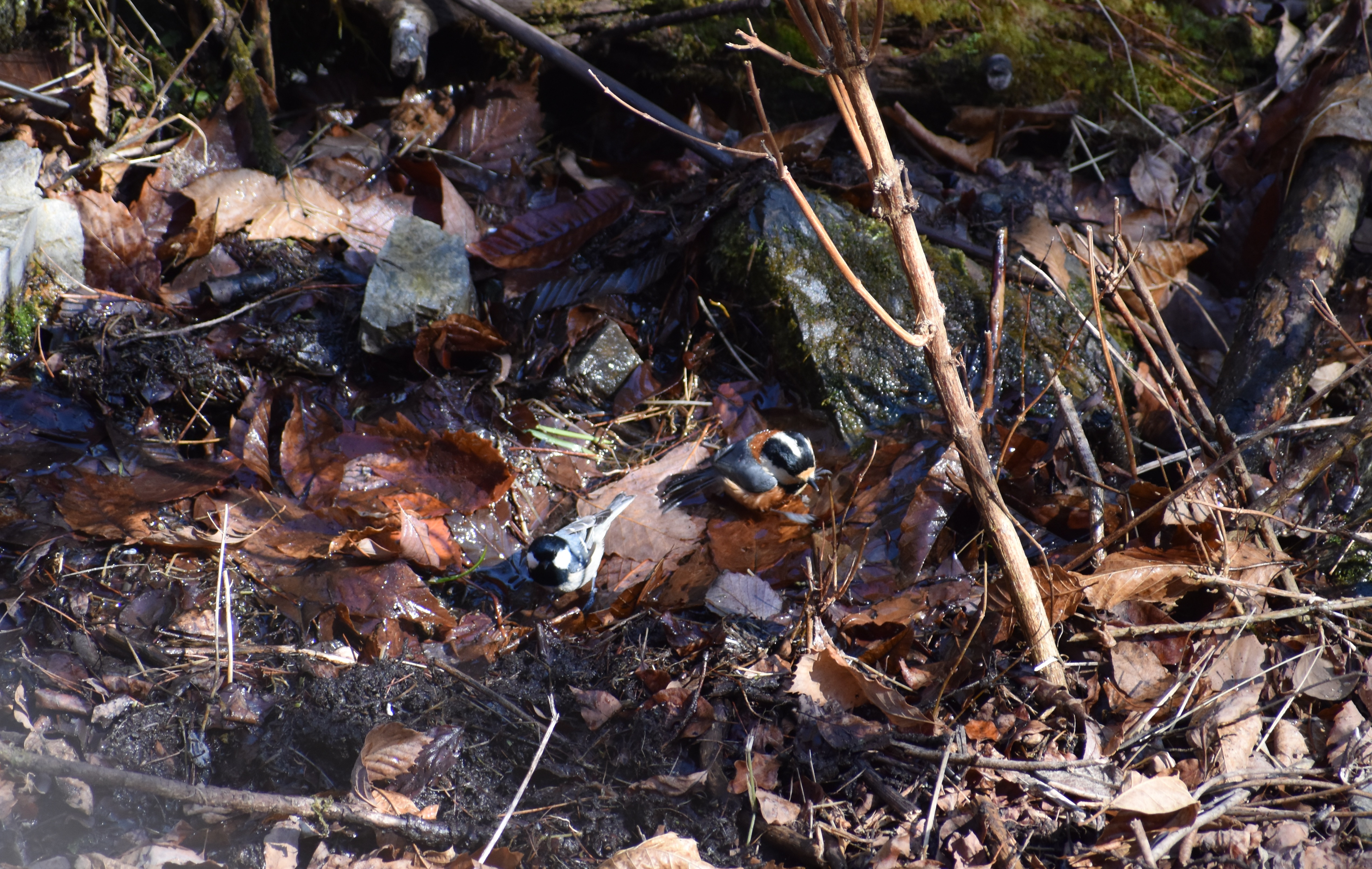この2羽は水場にいるところを見つけました。ただ、シジュウカラよりもヤマガラのほうが権力が強い(?)らしく、ヤマガラが独り占め。シジュウカラは控えめに堪能していました。
