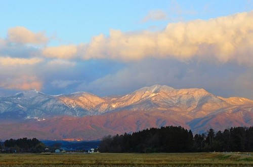 ▲大佐渡の山々も真っ白・・・というわけではありません