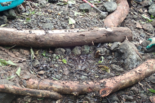 今回の作業では、小笠原特有の傾斜、滑りやすい赤土粘土に対して、重力のかかる方向を意識しながら、
